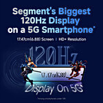 The 6.88-inch cinema-view display of this smartphone brings a large, cinematic experience right to your fingertips. With a high refresh rate of up to 120Hz and vibrant colours, this screen ensures an immersive viewing experience for gaming, streaming, and more.
