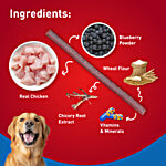Unleash the fun with these tasty sticks and surprise your pooch with savoury goodness! Bursting with drool-worthy flavour, chewy texture, and real chicken, every bite is a wild adventure. It's pure excitement in a snack-and gentle on their tummy foo! Introducing Drools Chicken Sticks Blueberry Flavour, the ultimate treat packed with wholesome yumminess for your furry friend.