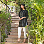 Juniper Black Printed 3/4th Sleeve Tunic, 1 pc (Size - L)