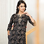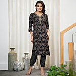 Juniper Black Printed Kurta With Pant, 1 Set (Size - L)