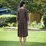 No Question askedJuniper Black Ethnic Motif Printed Rayon Flared Kurta