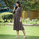 No Question askedJuniper Black Ethnic Motif Printed Rayon Flared Kurta