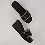 Hit the street in style with this trendy pair of black ethnic sandals from The White Pole. While the patent leather upper offers a snug fit to your feet, the TPR sole provides traction on slippery stretches. Exclusively designed for party occasions, it can be paired with any ethnic outfit.