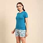 Pepe Jeans Solid T Shirt & Printed Shorts Sleepset - Teal Floral, 2 pcs (Size - 2XL)