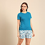 No Question askedPepe Jeans Solid T Shirt & Printed Shorts Sleepset - Teal Floral