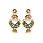 Aatmana Green & Gold-Toned Green & White Dome Shaped Jhumki Earrings For Women, 1 Pair (Free Size)