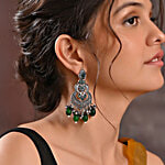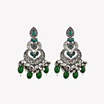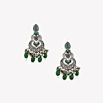 No Question askedFida Green Oxidized Silver Chand Bali Earrings For Women