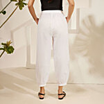 Daali White Cotton Flax Balloon Bottom Smart Formal Pencil Pants With Two Pockets