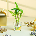 Nurturing Green 2 Layer Lucky Bamboo Plant 3-Stems In Glass Pot - 6 x 6 cm, 1 pc