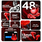 Nu Republic Epic X3 With X Bass, Up To 48 hrs Playtime, ENC Mic, Type C Fast Charging, Hall Sensor TWS Earbuds - Love Red, 1 pc