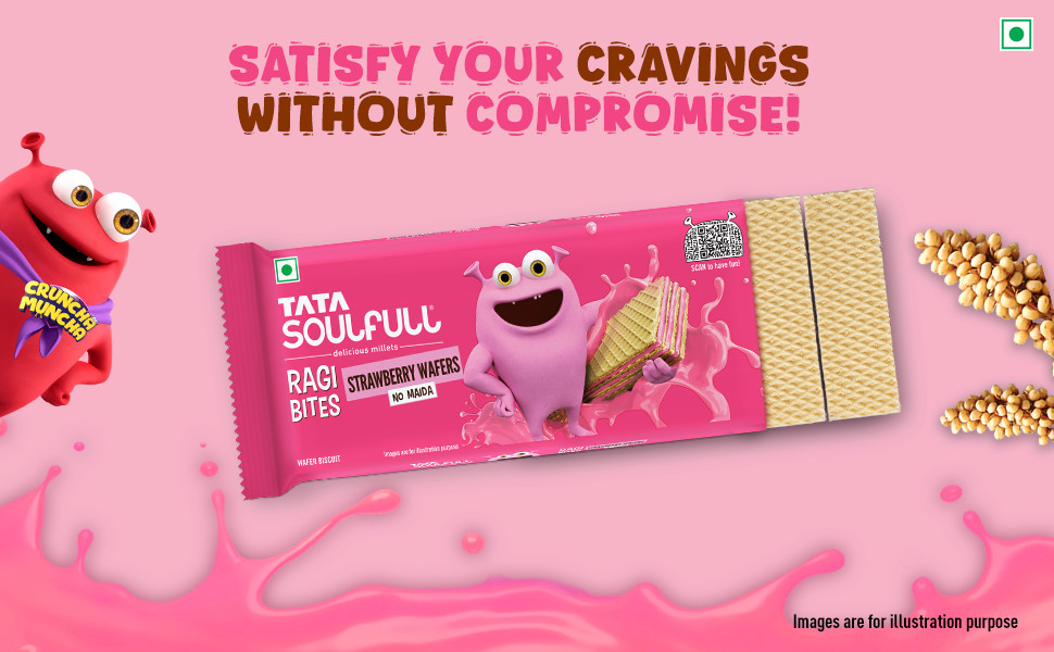 Tata Soulfull Strawberry Wafers combine taste and nutrition in every bite, offering a guilt-free snacking experience. Made with 16% millets - including Jowar and Ragi, and absolutely no maida, these wafers are a wholesome alternative to regular snacks. Crafted with the goodness of cereal flours, they deliver a delightful crunch along with essential nutrients. Perfect for tiffin, quick bites, or on-the-go munching, Tata Soulfull Strawberry Wafers are a deliciously smart choice for all ages.