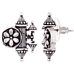 These brass stud-style earrings, embossed with delicate floral motifs and finished with oxidised silver plating, are a perfect match for ethnic skirts. With Voylla’s assurance of quality and durability, they are designed for long-lasting elegance. To maintain their beauty, keep them dry and away from chemicals. Remember, jewellery should be the last thing you put on and the first thing you take off.