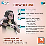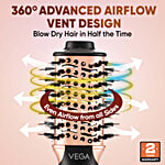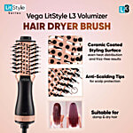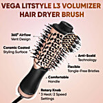 Vega LitStyle L3 Volumizer Hair Dryer Brush is the new compact hair dryer by Vega that comes with advanced technology for hair drying and styling. Its compact and lightweight size offers the ease to make your hair drying and styling routine complete in half the time at home and also on the go. This compact hair dryer for women combines the cutting-edge features of a hair dryer and styler with a Ceramic Coated styling surface for even heat distribution. The compact dryer brush also features 3 Heat/2 Speed Settings that offer maximum versatility and smooth, frizz-free blowouts in half the time. You can choose between the 3 speed settings (III for Hot Air & High Speed, II for Warm Air & Medium Speed and I for Normal Air & High Speed) to suit your hair type. The flexible tangle-free bristles and smooth ball tips of the compact hair dryer deliver massaging effects on the scalp while its Anti-Scalding Tips ensure scalp protection and Vent Design delivers effective blow dry. Additional features include an Ergonomic Design for a comfortable grip and a 360° Swivel Power Cord for tangle-free hair drying and styling.