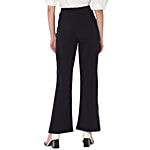 No Question askedSmarty Pants Navy Cotton Lycra Flared Fit High Rise Trousers