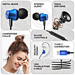 No Question askedpTron Boom Play In-Ear Type C Wired Headphones With Mic, 10 mm Drivers, 1.2 m Cable, In-line Controls, Blue
