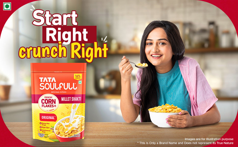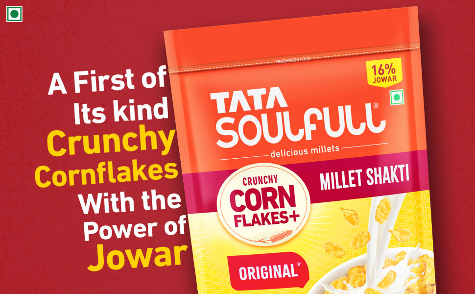 Start your day on a wholesome and delicious note with Tata Soulfull Corn Flakes+, Original*. This premium breakfast cereal combines the classic crunch of cornflakes with the wholesome goodness of 16% Jowar (sorghum), offering a rich source of dietary fiber to support digestion and keep you feeling fuller for longer. Tata Soulfull Corn Flakes+ is more than just a breakfast – it’s a wholesome, flavorful start to your day that combines taste, nutrition, and convenience in every bite.