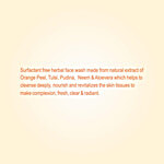 Patanjali Orange Aloe Vera Herbal Face Wash is a unique combination of nourishing aloe vera and the natural astringent orange peel. This face wash deeply cleanses and nourishes your skin. The natural antioxidants in oranges help to brighten and rejuvenate your complexion, while aloe vera soothes and hydrates, leaving your skin feeling refreshed and revitalized. Aloe vera’s natural moisturizing properties keep the skin soft. Neem and tulsi add a disinfectant and healing touch to the face wash while gently cleansing your face. Suitable for all skin types, this facewash effectively removes dirt, oil, and impurities, unclogging pores and preventing breakouts.