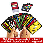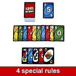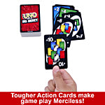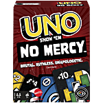 UNO Show 'em No Mercy is our most brutal UNO game yet! It has a ton more cards with way tougher penalties (draw 10 cards anyone) and new rules that will have players stacking, swapping and drawing more cards than ever before! And there's even a Mercy Rule (yes, we get the irony) if things get too rough. There are two ways to win in this merciless version of the classic game: get rid of all cards or knock all other players out of the game! Oh – and if you manage to get down to one card, don't forget to yell "UNO!"