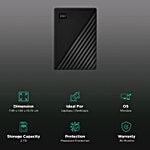 WD My Passport 2TB USB (3.2) Portable Hard Disk Drive (Slim Durable Design, Black), 1 Unit