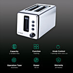 No Question asked 750W 2 Slice Pop-Up Toaster With Reheat Function - Silver