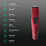 No Question asked Series 1000 Rechargeable Cordless Dry Trimmer For Beard & Moustache With 4 Length Settings For Men, 60 min Runtime, DataPower Technology, Red