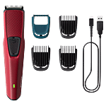 Series 1000 Rechargeable Cordless Dry Trimmer For Beard & Moustache With 4 Length Settings For Men, 60 min Runtime, DataPower Technology, Red, 1 Unit