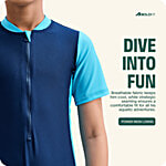 Expressive Style & Design: Featuring a stylish combination of blue and light blue, this kids beach wear boys bodysuit boasts a vibrant and eye-catching colour scheme that's sure to stand out by the pool or on the beach. The contrasting shades add a playful touch to the design, making it perfect for boys who love to make a statement. Available in a wide range of sizes from XS to XXL, this kids swimming costume for boys bodysuit caters to all age kids and body types.