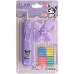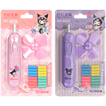 Introducing the Kuromi Electrici Eraser with Fan, the ultimate set for young artists and students. This delightful set of 18 pieces features a playful Kuromi-themed design that will captivate kids' imaginations. The electric eraser provides precise and effortless erasing, making it perfect for correcting mistakes on drawings, homework, and other projects. The built-in fan adds an extra layer of fun and functionality, helping to blow away eraser shavings and keep the workspace clean. The set includes multiple replacement eraser heads, ensuring long-lasting use. The ergonomic design of the electric eraser ensures a comfortable grip, making it easy for kids to handle and control. The vibrant colours and playful Kuromi design make this set a fun and engaging addition to any child's school supplies. Ideal for use at home, school, or during art classes, this set is perfect for encouraging creativity and improving fine motor skills. In addition to its primary use for erasing, the Kuromi Electric Eraser with Fan can also be used to create unique artistic effects by removing portions of colour or graphite to highlight specific areas of a drawing. This versatile set is an excellent gift for children, sparking their creativity and making learning and art projects more enjoyable.