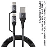 boAt Deuce USB 330 2-in-1 Type-C & Micro USB Cable, 3A Fast Charging, 480Mbps Data, 10,000+ Bends, 1.5m Length - Mercurial Black, 1 pc