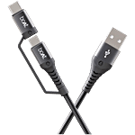 No Question askedboAt Deuce USB 330 2-in-1 Type-C & Micro USB Cable, 3A Fast Charging, 480Mbps Data, 10,000+ Bends, 1.5m Length - Mercurial Black