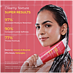 The Arata Super Hair Conditioner for dry, frizzy hair combines science-backed actives and nourishing superfoods for irresistibly soft, smooth, and bouncy hair. Powered by vegan keratin & rice water, it ensures 97% more moisture retention and 90% more cuticle softness. The conditioner's thick, buttery texture wraps your hair in a layer of intense moisture and nourishment.