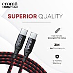 No Question asked Croma Type C to Type C 6.6 Feet (2M) Cable (Apple Compatible, Red)