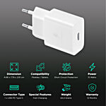 No Question asked 15 W Type C Fast Charger - Adapter Only, Short Circuit Protection, White