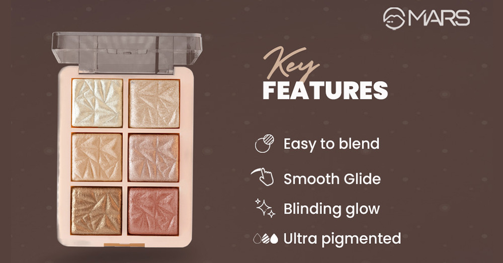 Mars Glowzilla 6 Colour Highlighter Palette is a must-have for any makeup collection. This highly pigmented palette features a range of colours that blend harmoniously to create a variety of looks. The smooth and luminous formula adds a blinding glow to your face, leaving you with radiant, glowing skin. With a blendable and buildable formula, this palette is perfect for achieving both subtle and dramatic looks. Its light-reflecting micro particles create a natural finish that makes your skin glow from within.
