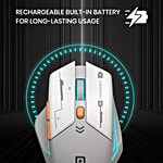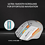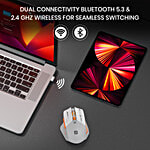The Portronics Vader Max Wireless Rechargeable Mouse is a high-performance dual-mode wireless mouse featuring Bluetooth 5.3 and 2.4 GHz connectivity for seamless usage across devices. With an adjustable DPI of up to 2400, it provides precision control for gaming, designing, and office tasks. Its 6-button layout allows quick navigation, while the ergonomic thumb support ensures a comfortable grip for extended use. Powered by a rechargeable battery, it eliminates the need for frequent replacements, making it a perfect companion for laptops, desktops, and gaming consoles. Designed for efficiency, style, and versatility, the Vader Max is your go-to choice for a superior computing experience.