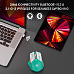 The Portronics Vader Max Wireless Rechargeable Mouse is a high-performance dual-mode wireless mouse featuring Bluetooth 5.3 and 2.4 GHz connectivity for seamless usage across devices. With an adjustable DPI of up to 2400, it provides precision control for gaming, designing, and office tasks. Its 6-button layout allows quick navigation, while the ergonomic thumb support ensures a comfortable grip for extended use. Powered by a rechargeable battery, it eliminates the need for frequent replacements, making it a perfect companion for laptops, desktops, and gaming consoles. Designed for efficiency, style, and versatility, the Vader Max is your go-to choice for a superior computing experience.