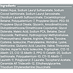Water/Aqua, Sodium Lauryl Sulfoacetate, Sodium Cocoyl Isethionate, Sodium Lauryl Sarcosinate Disodium Laureth Sulfosuccinate, Cocamidopropyl Betaine, Polyquaternium-7, Propylene Glycol, PEG-55 Propylene Glycol Oleate, Glycerin, Amodimethicone, Divinyldimethicone/Dimethicone Copolymer, Glycol Disterate, Maleic Acid, Sodium PCA, Betaine, Decyl Glucoside, Panthenol, Hydroxypropyl Methylcelulose, Phenoxyethanol, Alanine, Arginine, Proline Tyrosine, Cysteine, Isoleucine. Phenylalanine, Histidine, Lysine Methionine, Glutamic Acid, Leucine, Valine, Threonine Glycine, Aspartic Acid, Tryptophan, C12-13 Alketh-23, C12-13 Alketh-3. PPG-5-Ceteth-20. SodiumIsethionate, Polyquatemium-10, C11-15 alketh-7, Laureth-9, Polyglyceryl-3 Laurate, Tocopheryl Acetate, Ceramide AP, Trideceth-12. Ethylhexylglycerine, Trisodium Ethylenediamine Disuccinate