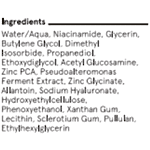 Aqua, Niacinamide, Glycerin, Butylene Glycol, Dimethyl Isosorbide, Propanediol, Ethoxydiglycol, Acetyl Glucosamine, Pseudoalteromonas Ferment Extract, Zinc PCA, Zinc Glycinate, Allantoin, Sodium Hyaluronate, Hydroxyethylcellulose, Phenoxyethanol, Xanthan Gum, Lecithin, Sclerotium Gum, Pullulan, Ethylhexylglycerin