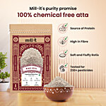Crafted from the finest Ragi grains, Mill-it’s Ragi Atta/Finger Millet Flour offers exceptional freshness, flavour, and nutrition. It is 100% chemical and pesticide-free, naturally sourced, processed, and rigorously tested for over 230 chemicals and pesticides. Using traditional stone grinding with slow RPM milling, this atta preserves essential nutrients while enhancing its authentic taste. Rich in calcium, essential amino acids, antioxidants, and dietary fibre, it provides a nutrient-dense option for a balanced diet. Gentle on the stomach, it is easy to digest and suitable for all age groups. Its versatile use makes it perfect for preparing dosa, idli, roti, pancakes, and cookies. For lasting freshness, store in a cool, dry place in an airtight container.