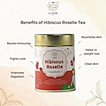 Hibiscus tea is an infusion from crimson or deep magenta-coloured calyces (sepals) of the roselle (Hibiscus sabdariffa) flower. It is consumed both hot and cold. Hibiscus Roselle tea is rich in vitamin C and minerals and makes a wonderful herbal remedy to fight off colds and infections by strengthening the immune system. Hibiscus tea is naturally calorie and caffeine-free. It may in fact, be an effective treatment for high blood pressure and to treat high cholesterol levels and digestive woes.