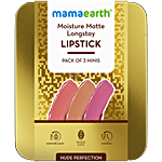 Delicate, understated, Nude lipsticks are here to rule! Introducing Mamaearth Moisture Matte Long Stay Lipstick Gift Set. Featuring 3 mini lipsticks in low-key nude shades, it keeps you ready for every part of your day. Whether you're running errands or running the show, these subtle stunners have got you covered. Travel-friendly, they also make the perfect gift for all things festive! Enriched with the goodness of Avocado Oil and Vitamin E, the lipsticks lock in moisture for up to 8 hours, offering you 12 hours of flawless wear. Best of all, our Moisture Matte Lipsticks are Made Safe Approved – toxin-free and gentle on the lips. So go ahead and try them out because Nude Perfection is always in trend!