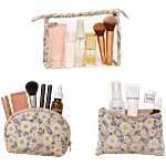 QIPS Floral Design Cosmetic Zipper Pouches - Peach, 3 pcs