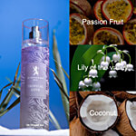 Tropical Love is an intoxicating body mist that transports you to a sun-kissed paradise, where the air is filled with the sweet whispers of adventure and romance. The fragrance opens with a vibrant burst of juicy melon, zesty lemon, and luscious passionfruit, intertwined with exotic fruits that awaken your senses and evoke the essence of carefree days under the tropical sun.