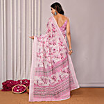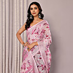 Janasya Pink Printed Sarees, 1 pc (Free Size)