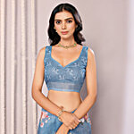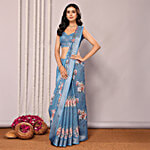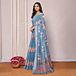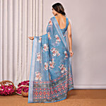 Janasya Blue Printed Sarees, 1 pc (Free Size)