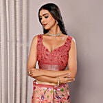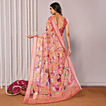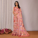 Janasya Peach Printed Sarees, 1 pc (Free Size)