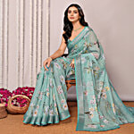Janasya Green Printed Sarees, 1 pc (Free Size)