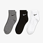 Nike Everyday Lightweight Socks - Grey, Black, White, 3 Pairs (Size - L)