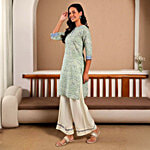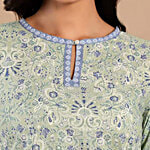 W Green Cotton Printed Straight Kurti, 1 pc (Size - M)