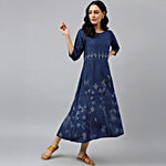 W Indigo Printed A Line Kurta, 1 pc (Size - S)